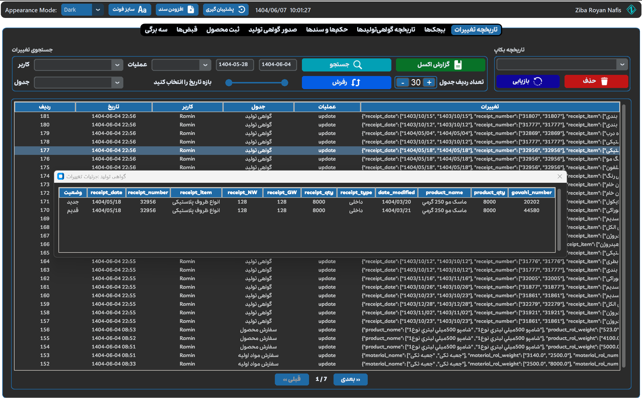 - مشاهده تمام تغییرات اعمال شده توسط کاربران و گزارش گیری و جستجو براساس فیلترهای مختلف