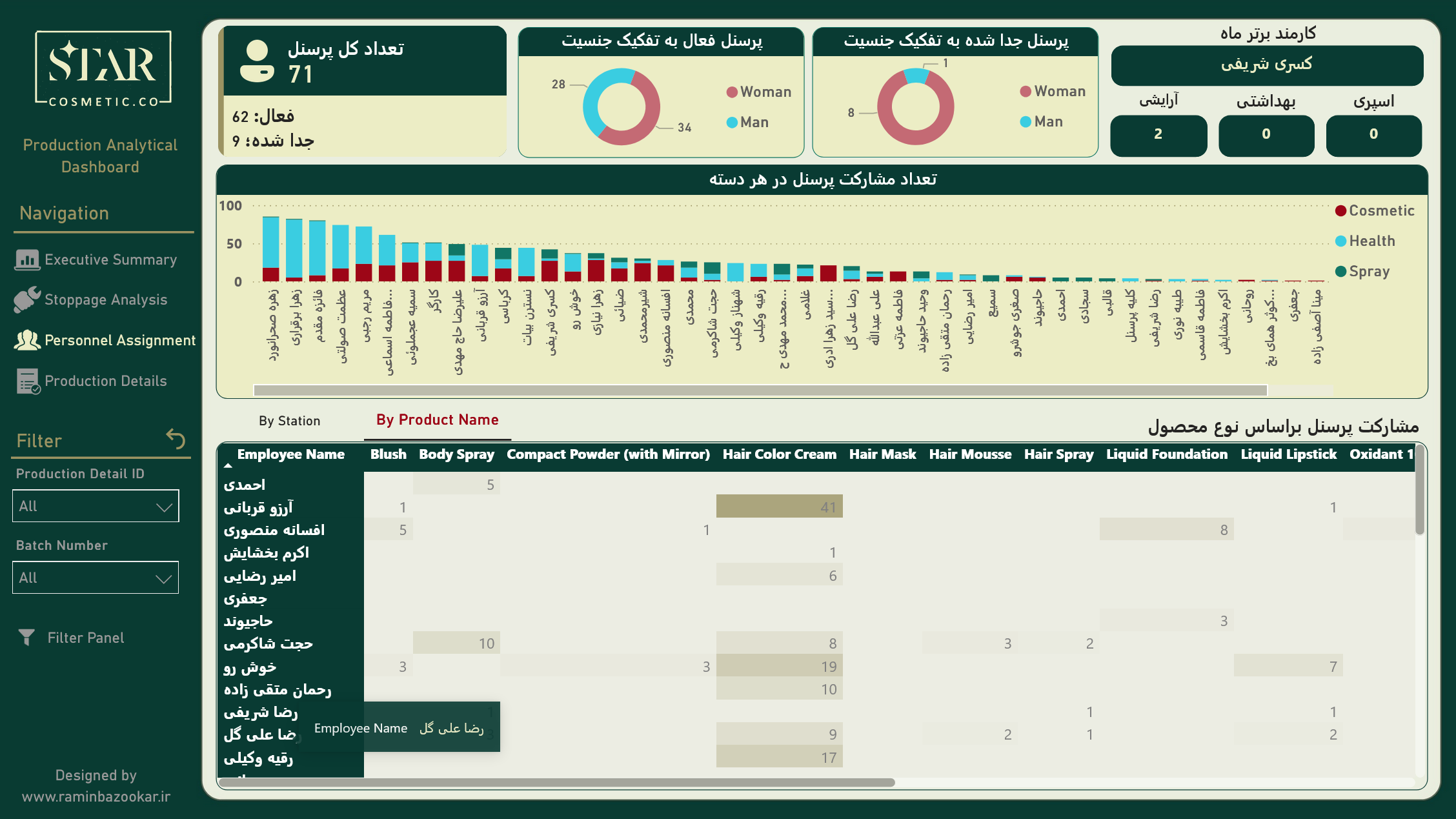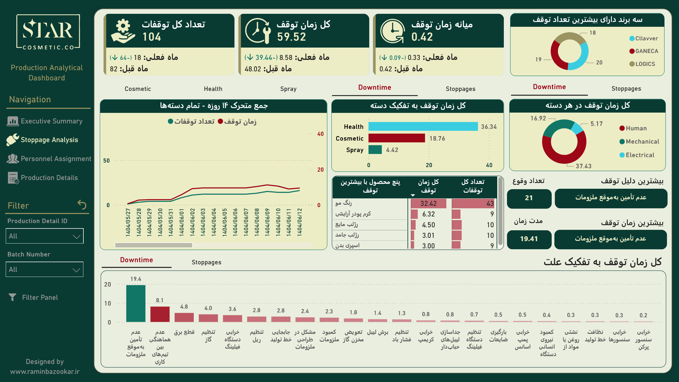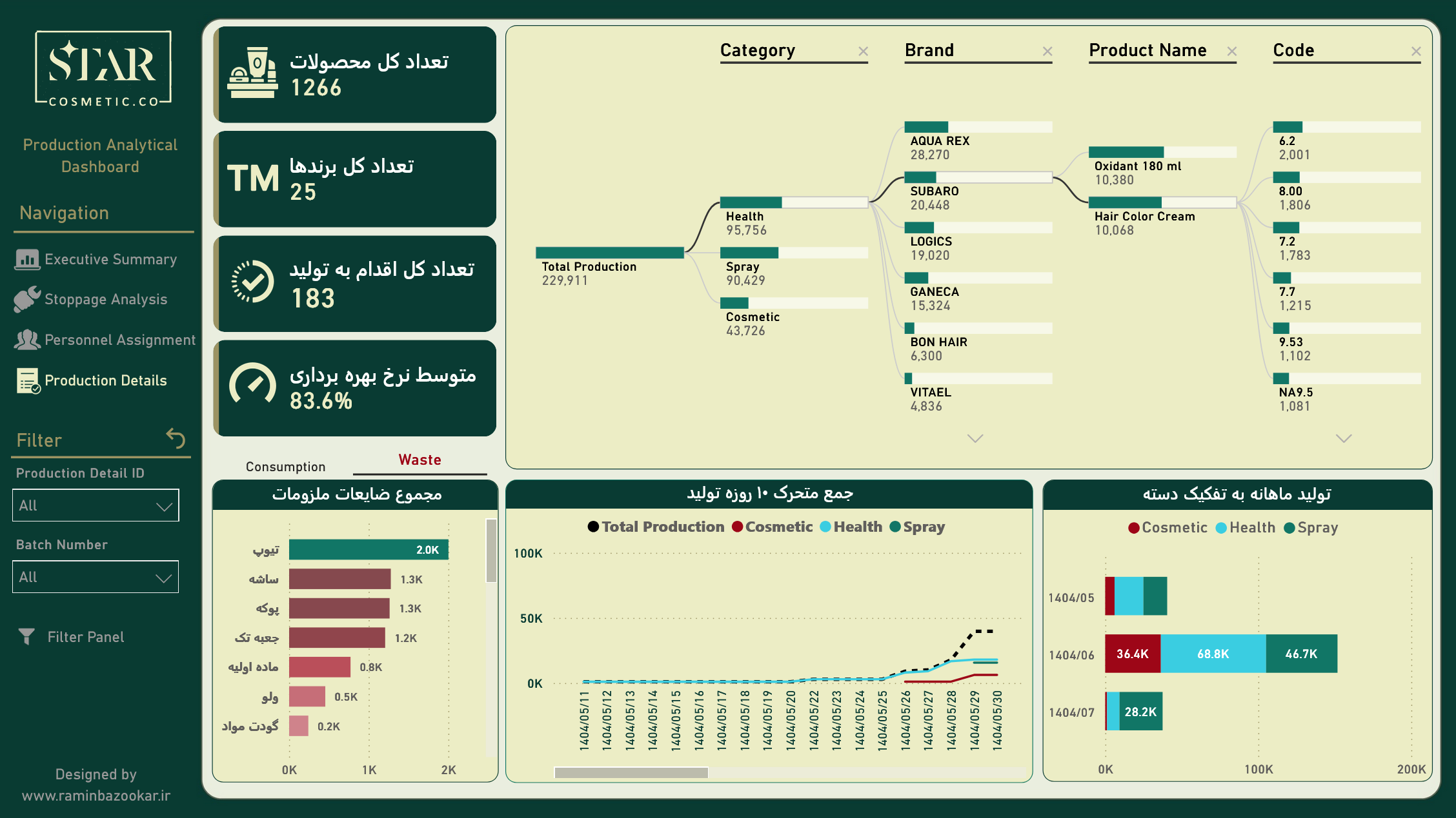 داشبورد تحلیلی تولید شرکت آرایشی و بهداشتی